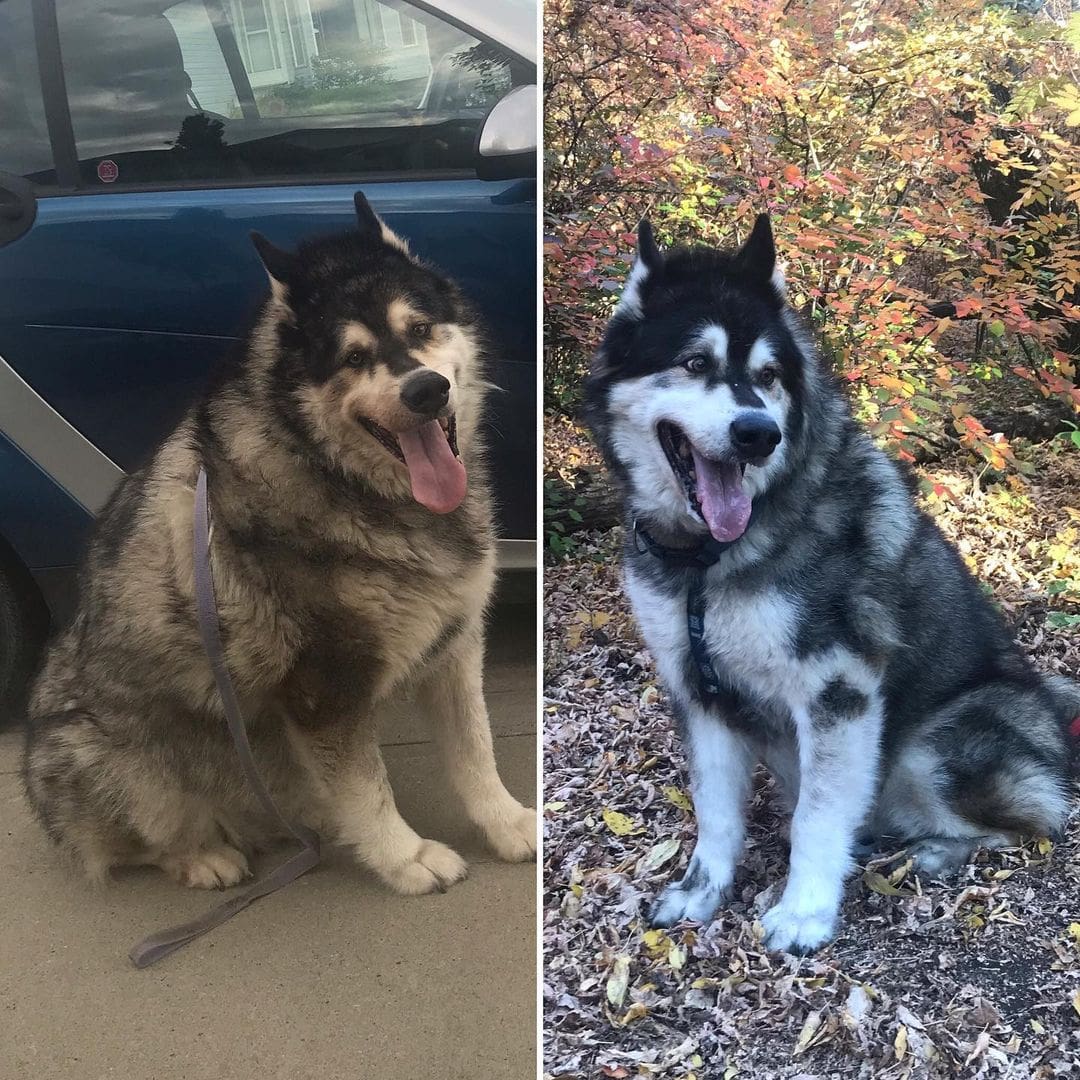 Когда он впервые переехал ко мне, он не мог нормально ходить без необходимости перевести дыхание. В предыдущем доме его ОЧЕНЬ перекормили. Он немного похудел за последние 2,5 года, проведённые со мной, и может ходить и бегать.