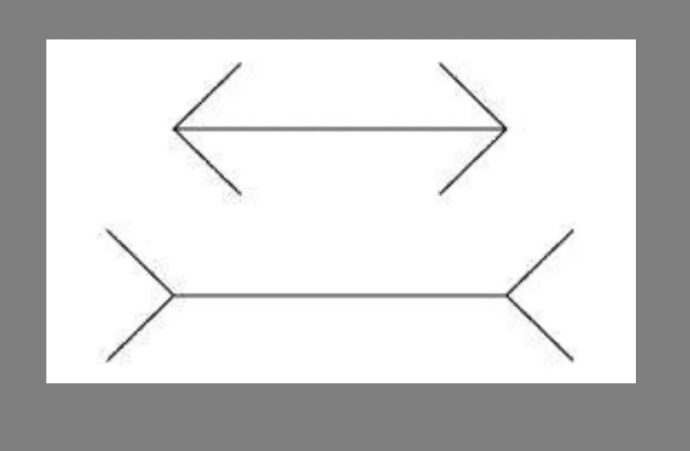 Внимательно посмотрите на рисунок. В нем нет ничего особенного: две горизонтальные линии разной длины, к которым пририсованы стрелки, направленные в разные стороны. Линия снизу явно длиннее, чем та, что сверху. Именно это мы видим и, естественно, верим тому, что видим.