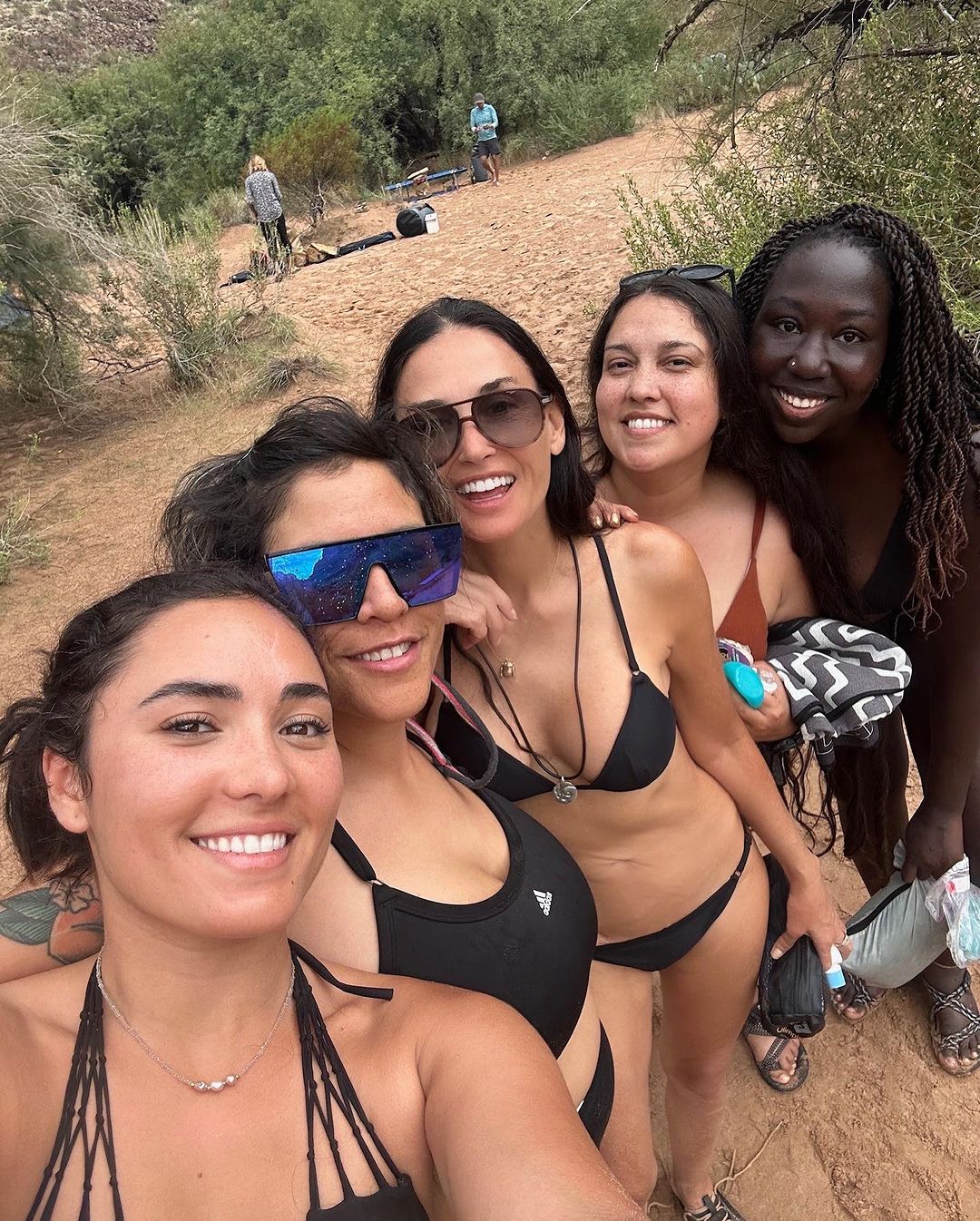 60-летняя Деми Мур продемонстрировала свой пресс в крошечном черном бикини, позируя под красивым водопадом в устье Дир-Крик.