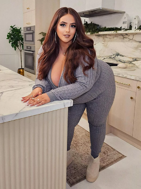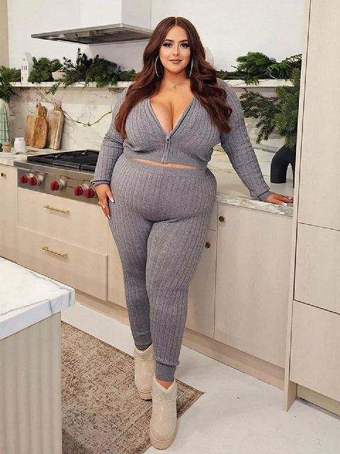 В посте бодипозитивная красавица продемонстрировала свои формы в расстегнутом сером укороченном джемпере, который она сочетала с соответствующими брюками. Она дополнила комплект близнецов кремовой грудью и огромными серьгами-кольцами.
