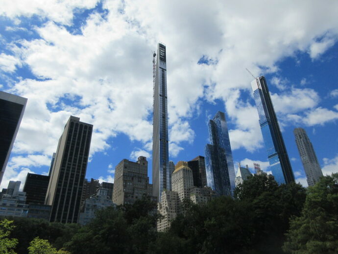 Steinway Tower, 84-этажный роскошный жилой дом на Манхэттене с соотношением высоты к ширине 24:1, официально считается самым тонким небоскребом в мире.