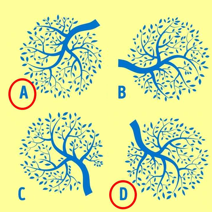 На изображении, представленном выше, читателям представлена головоломка, на которой можно увидеть четыре дерева, отмеченные A, B, C и D.