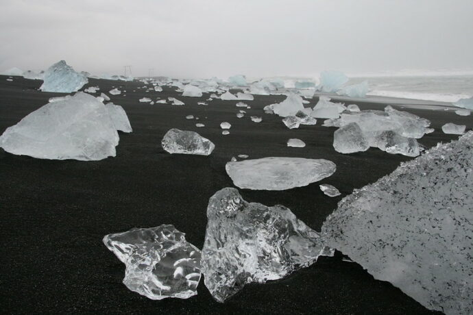 Пляж с черным песком, усеянный огромными кусками блестящего льда, стал одной из самых посещаемых достопримечательностей Исландии, и не зря он выглядит как персонаж из фантастического фильма.