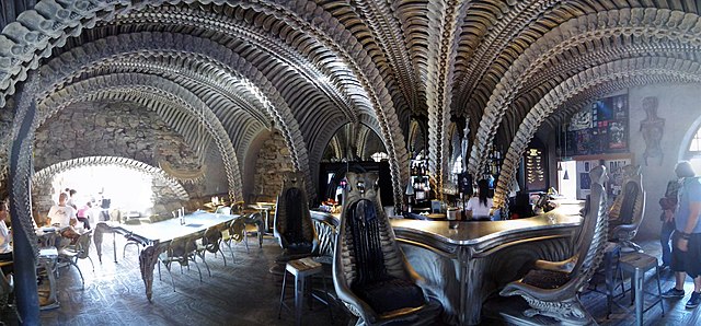 Питьевое заведение, которое также является своего рода музеем, вполне может быть самым жутким баром в Европе: стулья, стены и столы сделаны так, чтобы напоминать кости внеземных скелетов.