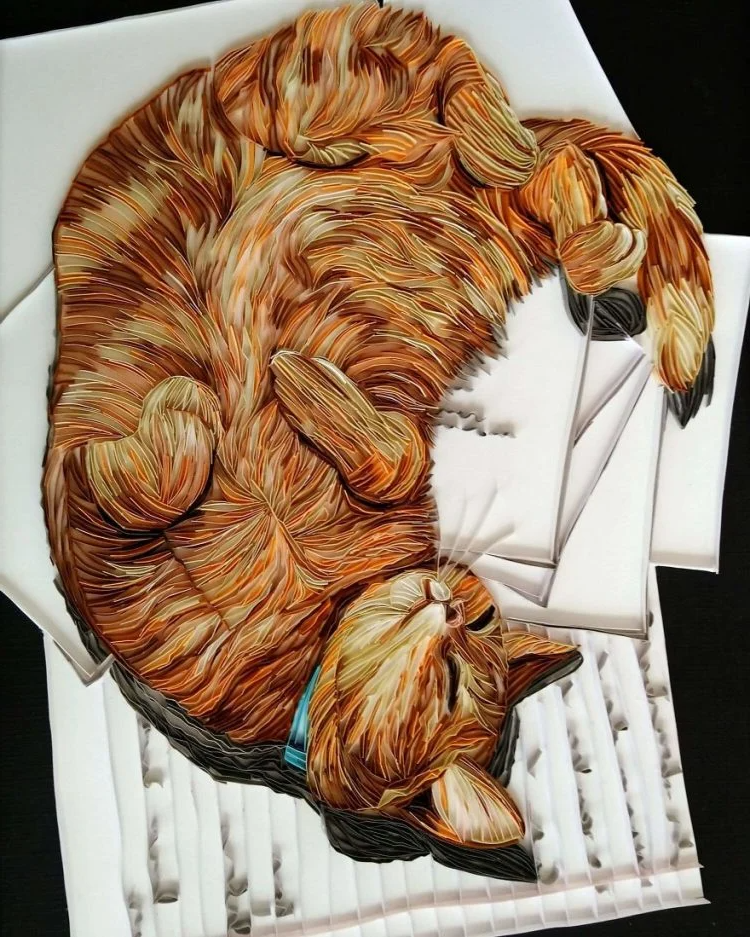 Талантливая художница оттачивала свое мастерство в квиллинге и собрала весьма впечатляющую коллекцию работ: от детальных портретов воображаемых человеческих персонажей до таких животных, как собаки, кошки и даже гориллы.