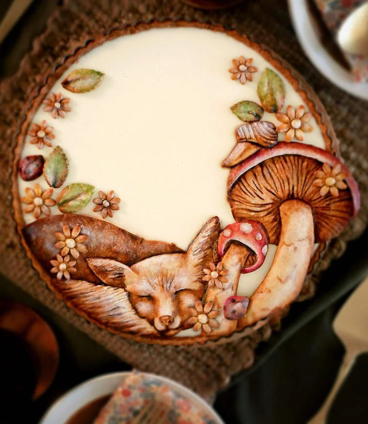 Работая по совместительству креативным директором в рекламном агентстве своего мужа, Девони Скарф начала заниматься фуд-артом в качестве хобби, а также старалась изо всех сил, работая полный рабочий день мамой. Ее ранние работы были не самыми впечатляющими, но по мере того, как она продолжала практиковаться, экспериментировать и придумывать новые техники и дизайны, ее художественные пироги значительно улучшились.