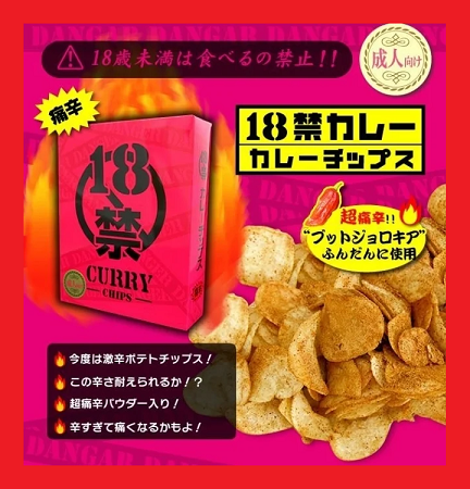 Печально известные чипсы с призрачным перцем производятся компанией Isoyama Corp, базирующейся в префектуре Ибараки в Японии, и четко маркируются как «чипсы карри 18+». На своем веб-сайте компания также предупреждает, что «людям с высоким кровяным давлением или слабым желудком ни в коем случае нельзя их есть», а «чрезмерное употребление может вызвать расстройство желудка».