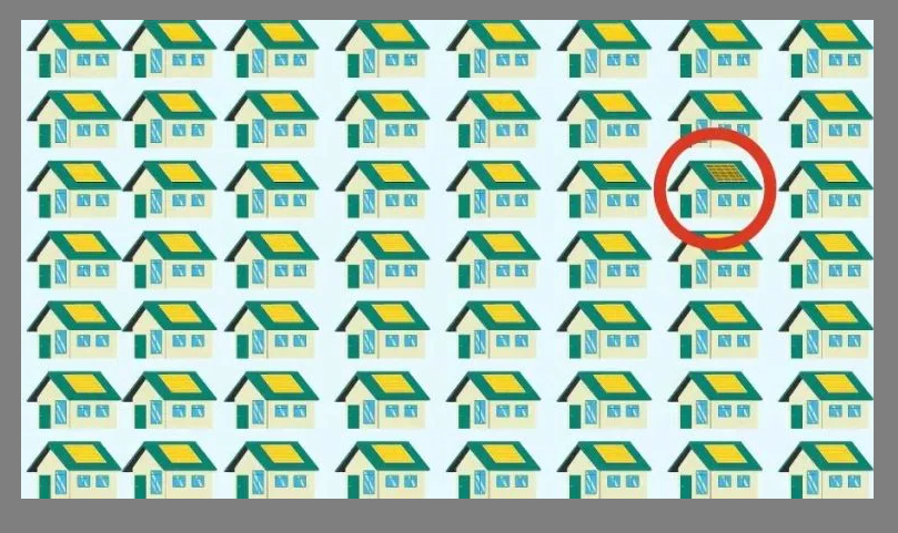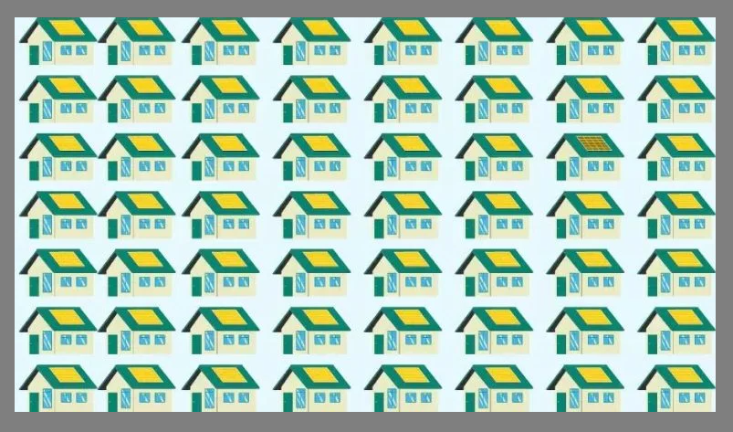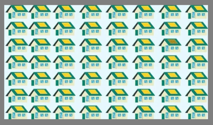 В этой оптической головоломке предоставлены изображения десятков домов, выстроенных в ряд справа налево, разумеется, с одинаковым типом и площадью, но только один отличается какой-то деталью от остальных.