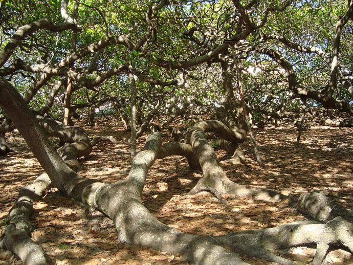 Но как же самое большое в мире дерево кешью стало таким большим? Ну, по-видимому, это связано с генетической аномалией, из-за которой его ветви растут в стороны, а не вверх. Вес и гравитация заставляют ветви наклоняться к земле, и когда они соприкасаются с почвой, начинают формироваться новые корни, и дерево продолжает расти. В наши дни почти невозможно отличить первоначальный ствол от остальной части дерева.