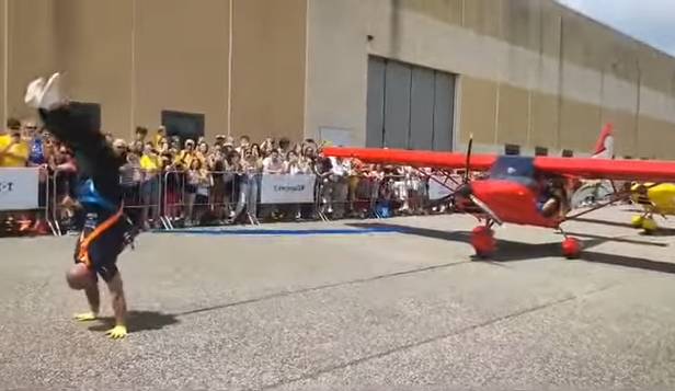 Итальянец перетащил три небольших самолета, идя на руках, тем самым побив мировой рекорд Гиннесса.