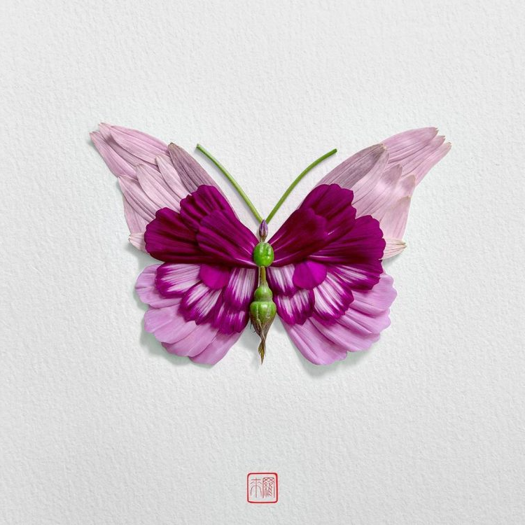 Глядя на свой недолговечный улов, японский художник задумал использовать лепестки для создания произведений искусства. Он расположил их в форме жука с маленькими веточками вместо ног, и его небольшой проект оказался настолько хорош, что он продолжил его.