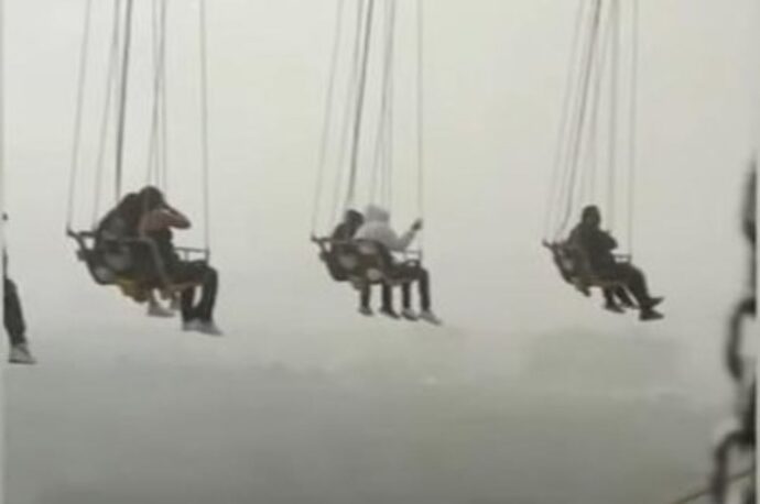 В парке развлечений Six Flags Mexico из-за шторма остановился аттракцион, в результате чего находившиеся на борту люди около 10 минут висели в воздухе на высоте 243 футов.