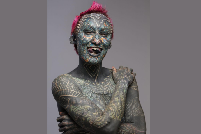 Женщина из Коннектикута попала в Книгу рекордов Гиннесса, покрыв 99,98% своего тела татуировками и сделав 89 модификаций тела.