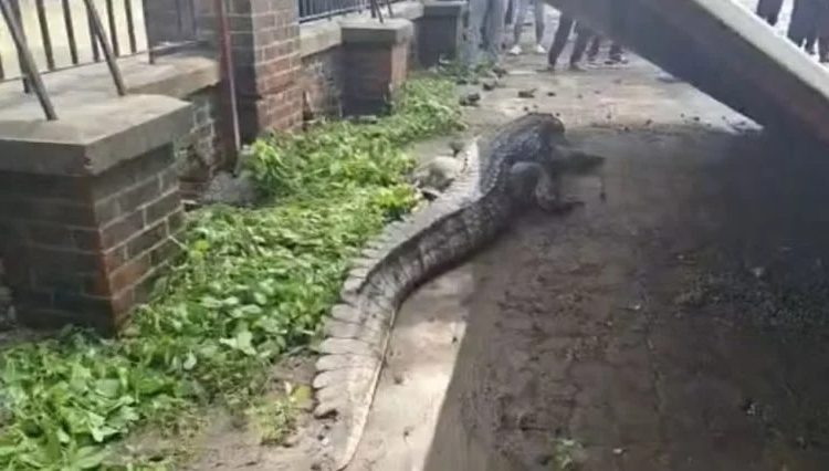 Город Вадодара в индийском штате Гуджарат кишит гигантскими крокодилами после разлива местной реки, вызванного рекордным количеством осадков.