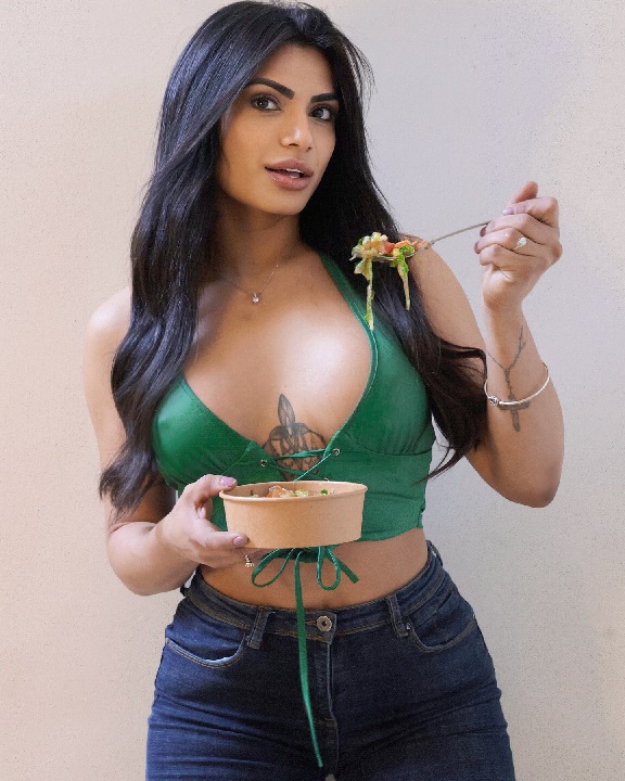 Бразильская красотка, у которой 116 000 подписчиков, придерживается диеты с высоким содержанием белка и съедает около 250 яиц в месяц. Она также съедает 15 кг батата, что определенно привлекает внимание людей, когда она делает еженедельные покупки.