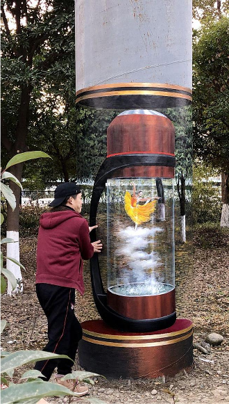 Ли Цзяюэ — талантливый молодой художник из китайской провинции Сычуань, специализирующийся на создании чрезвычайно детализированных трехмерных оптических иллюзий.