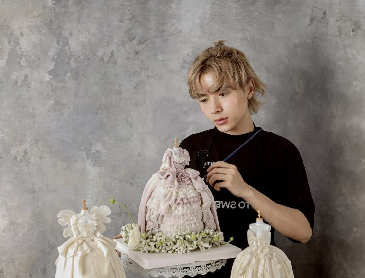 Нгуен Ву Хоанг Ань, один из самых талантливых и креативных кондитеров Вьетнама, прославился своими фирменными тортами в форме миниатюрных аристократических платьев с крошечными складками и защипами.
