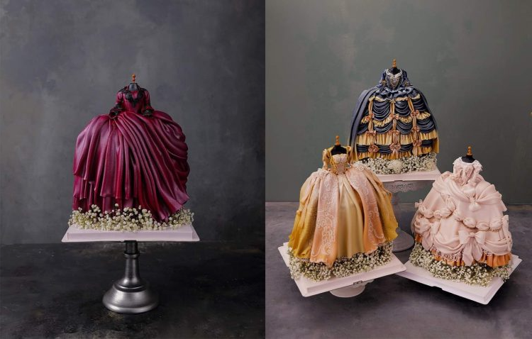 34-летний Нгуен Ву Хоанг Ань давно известен как один из лучших художников по тортам во Вьетнаме, но хотя его потрясающе реалистичные цветы из помадки и безупречные многоярусные торты всегда были впечатляющими, именно его фирменный аристократический торт-платье заслужил ему много внимания и похвалы в социальных сетях. Сделанные с использованием многослойной бисквитной основы, скрепленной сливочным кремом и шоколадом, безумно детализированные торты покрыты слоем цветной помадки, вручную отлитой в форме аристократических платьев в европейском стиле, вдохновленных эпохой барокко.