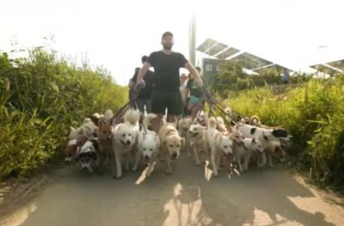 Митчелл Руди повел стаю из 38 собак на поводках на прогулку длиной 0,6 мили, побив мировой рекорд Гиннесса по количеству собак, одновременно выгуливаемых одним человеком.
