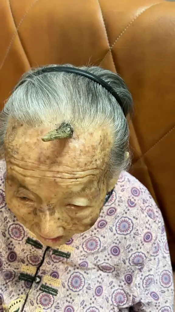 107-летняя женщина из Китая ошеломила пользователей социальных сетей, продемонстрировав огромный рог, растущий у нее изо лба.