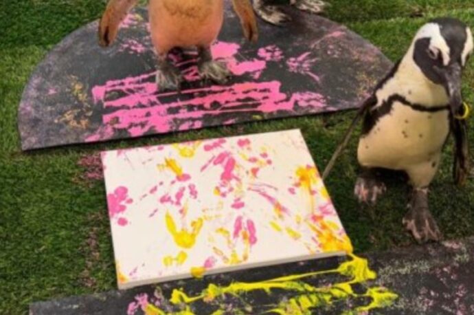 «Для меня самый простой способ заставить наших пингвинов рисовать — это еда», — рассказала WBNG-TV смотрительница зоопарка Микайла Конвэй. «Они очень мотивированы едой, и если в какие-то дни им не хочется есть, они будут гоняться за кошачьим лазером».