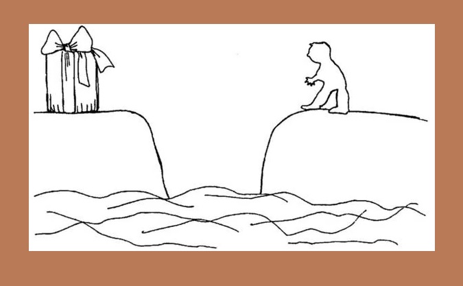 Человек — это вы, подарок — ваша цель, река — это какие-то препятствия, которые вам предстоит преодолеть на пути к цели. То, как вы это сделаете (то есть как вы закончите рисунок), покажет, насколько вы решительны.