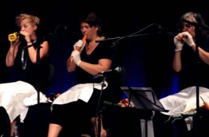 Артисты теперь довели до совершенства искусство игры на овощах. Среди их инструментов — морковь, вырезанная в виде блокфлейт, и лук-порей в виде мандолин.