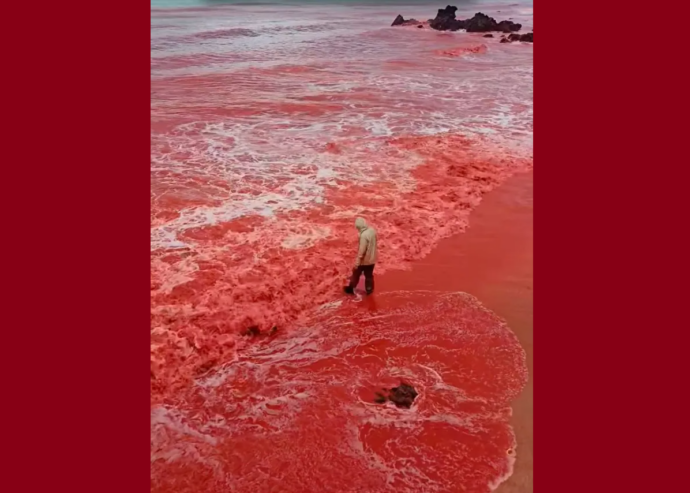 По данным Daily Mail, кадры этого так называемого багрового прилива в настоящее время набирают миллионы просмотров в Instagram.