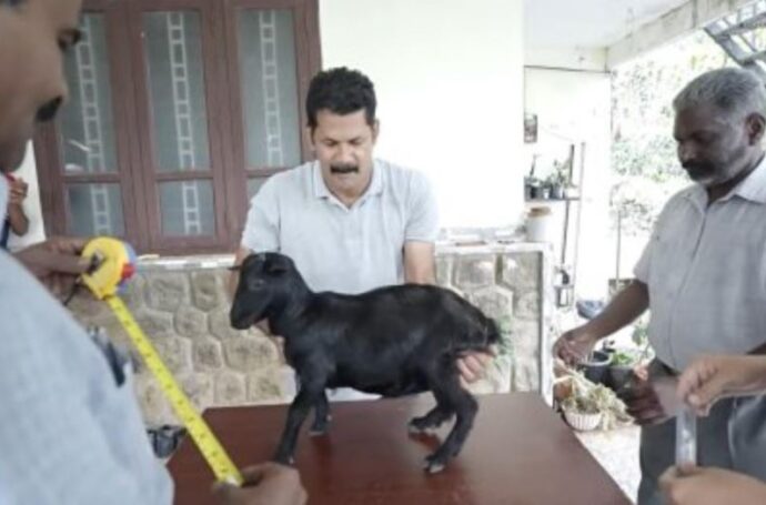 Карумби, четырехлетняя черная карликовая коза, принадлежит фермеру Питеру Лену из Кералы (Индия), который сказал, что не думал, что ее миниатюрный рост может побить рекорд, пока один из гостей не заметил, что его карликовые козы кажутся намного меньше других, которых они видели.