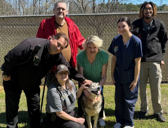 Полицейское управление Роки-Маунт сообщило в социальных сетях, что Джонатан Ширин и его жена заметили свою давно пропавшую собаку Каз на странице Petfinder города Роки-Маунт.