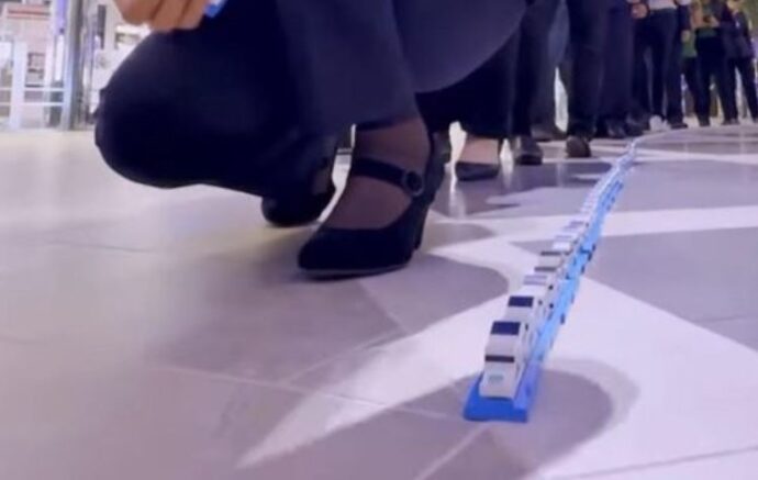 Команда из примерно 1500 членов экипажа собрала и расставила 1391 корабль, в результате чего получилась линия лодок Lego длиной 292 фута.