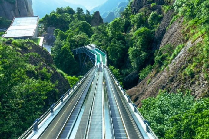 Гора Таньюй в китайской провинции Чжэцзян стала первой, которая стала вирусной из-за установки эскалатора, позволяющего любому человеку достичь ее 350-метровой вершины в 2023 году, но с тех пор ее примеру последовали несколько других живописных горных районов. Реакция общественности была неоднозначной: некоторые люди приветствовали инициативу, позволяющую всем, включая пожилых людей и людей с ограниченными возможностями, наслаждаться захватывающими видами, а другие обвиняли власти в том, что они лишают пешие походы удовольствия.
