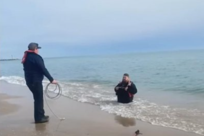 Житель Мичигана, застрявший по пояс в «зыбучих песках» на пляже озера Мичиган, выбрался оттуда без травм и с подругой.