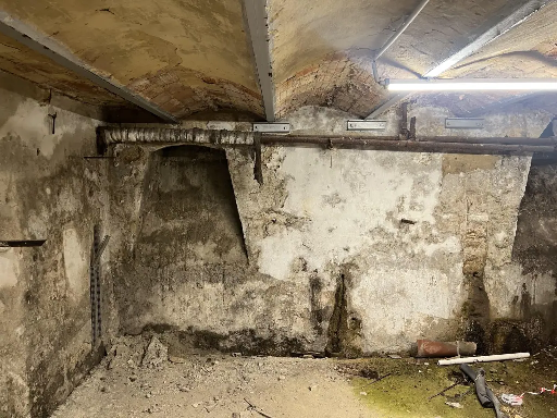 В другой камере имеются открытые трубы и единственный светодиодный светильник, освещающий беспорядочную обстановку.