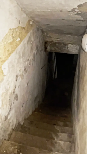 На фотографиях изображены лестницы, ведущие в подвал, различные темные проходы и лабиринтообразная зона с несколькими дверными проемами.
