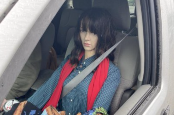 Полицейский Рик Джонсон, сотрудник службы общественной информации WSP, сообщил в социальных сетях, что первый водитель был остановлен во вторник на полосе для движения транспортных средств с большим количеством пассажиров на межштатной автомагистрали 5 недалеко от Шорлайна, когда полицейский заметил, что единственным пассажиром был манекен в парике брюнетки, клетчатой рубашке и шарфе.