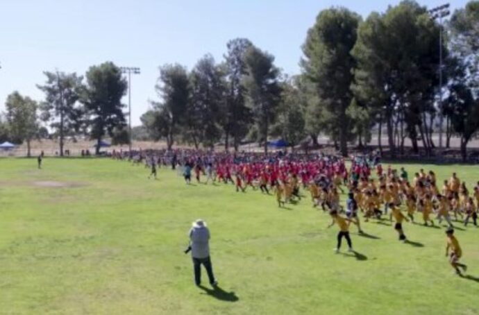 Образовательная группа CF Fitness Inc., целью которой является популяризация физической культуры в школах, собрала учеников начального школьного округа Анахайма и их семьи, чтобы сыграть в рекордную игру в парке Йорбе в Анахайме.