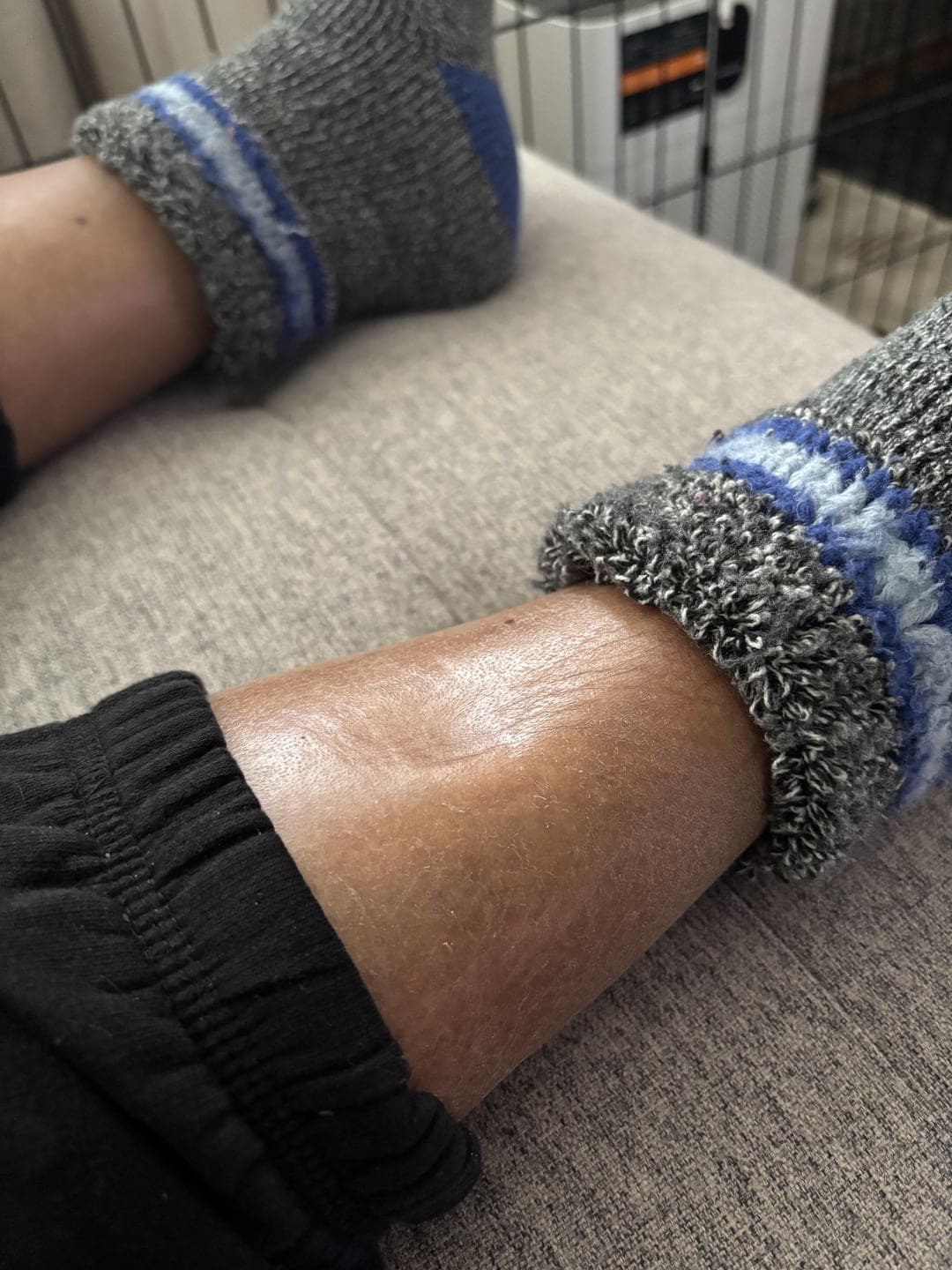 Вмятина на ноге моей матери, под которой почему-то нет плоти и мышц