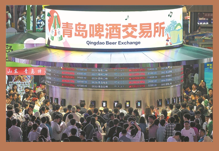 На пивной бирже Циндао имеется 30 кранов, где подают 10 различных сортов пива: от классических сортов пива Циндао, таких как оригинальное разливное и чистое разливное, до сортов с фруктовыми добавками, таких как пиво с личи, персиком и маракуйей. В период с 31 мая по 2 июня среднесуточное количество посетителей на пивной бирже составило более 10 000 человек, а объем продаж за один день превысил 1,2 миллиона миллилитров пива.