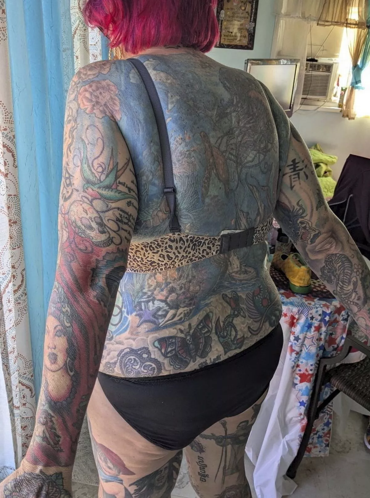 «Люди смотрят и пялятся, и они в ужасе», — объяснила она, почему троллям не нравится ее обширная коллекция татуировок. «Одна дама сказала: «Вы ужасны!».