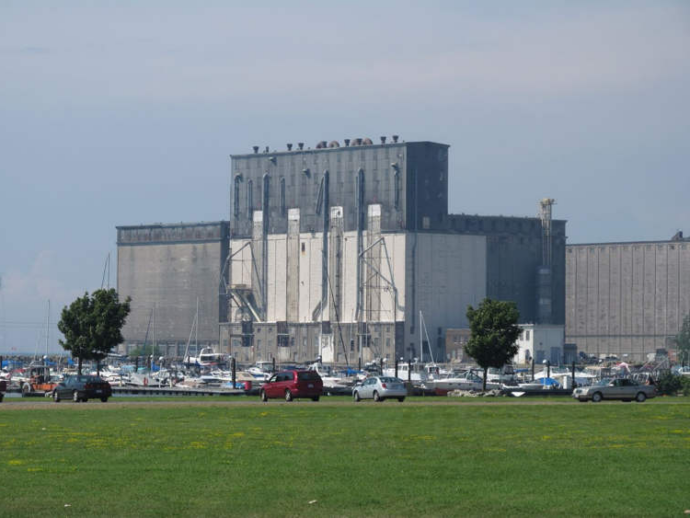 Обычно предметы кажутся меньше на расстоянии и увеличиваются по мере приближения, но это правило не распространяется на зерновой элеватор, расположенный в марине Шугарлоф в Порт-Колборне. Когда автомобилисты поворачивают налево на Лейкшор-роуд к западу от Семент-роуд, их взгляд заполняет это массивное бетонное здание вдали.
