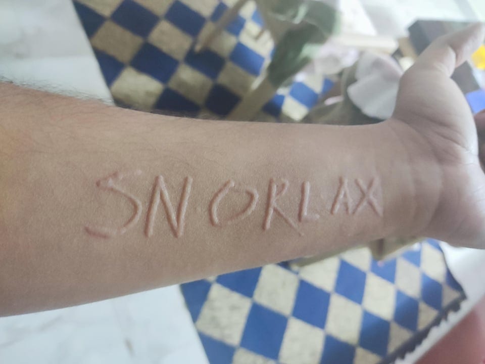 Из-за этого лёгкие царапины на коже вызывают выпуклые красные линии, которые проходят сами по себе в течение тридцати минут.