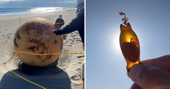 Таинственный металлический шар, который прибило к одному из японских пляжей