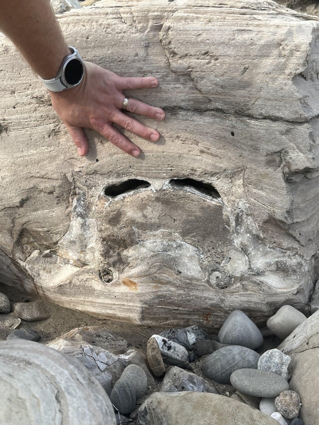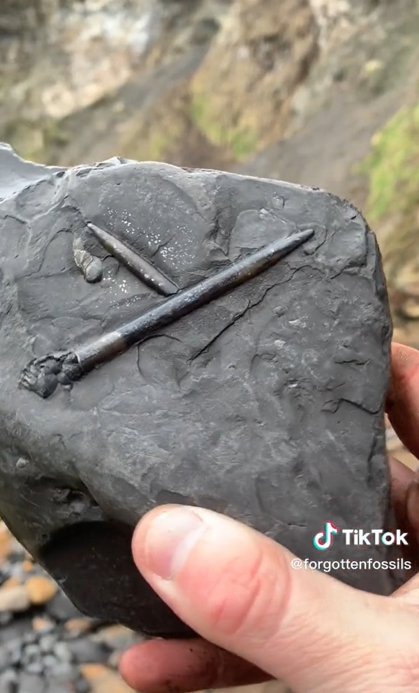 Нашёл двух окаменевших кальмаров. Они отлично сохранились в скале
