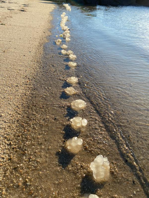Сотни медуз были выброшены на берег пляжа. Выглядят как драгоценные камни
