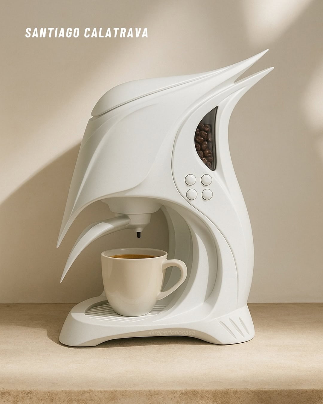 Что, если бы лучшие архитекторы мира создавали кофемашины? Цифровой художник Лукас Кенджи воплотил эту идею в жизнь, представив 18 невероятных концептов. Заха Хадид, Тадао Андо, Фрэнк Гери и другие архитектурные титаны получили шанс проявить свой талант в неожиданном амплуа. Результат – поразительное сочетание узнаваемого стиля каждого мастера и функциональности обычной кофемашины.