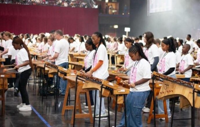 Молодые музыканты со всей Южной Африки и Зимбабве собрались в Кейптауне, чтобы побить мировой рекорд Гиннесса как самый большой ансамбль, играющий на маримбе и насчитывающий 1276 музыкантов.