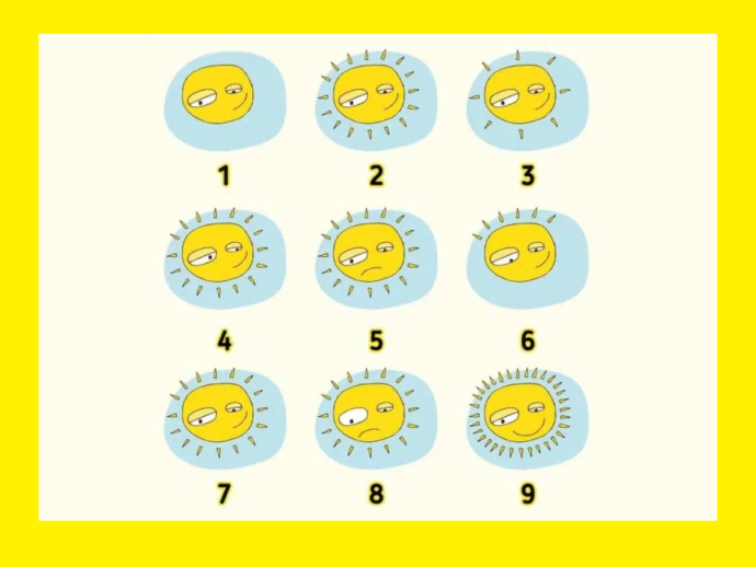 Внимательно всмотритесь в предложенное изображение. Среди множества фигур, напоминающих солнце, только две являются абсолютно идентичными. Ваша миссия – найти эту пару как можно быстрее. Постарайтесь уложиться в рекордные 4 секунды и докажите, что ваш мозг работает на сверхскоростях! 🚀