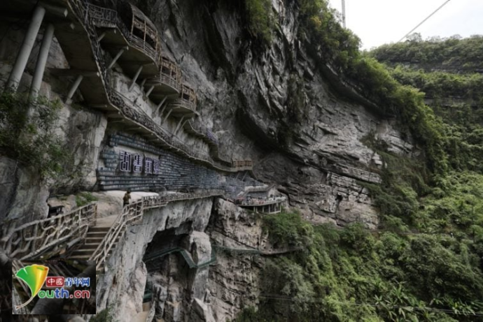 Расположенная на краю высокой скалы, в окружении пышной зелени, библиотека Мяньхуа выглядит как нечто созданное искусственным интеллектом, но на самом деле это реальное место, которое может посетить любой желающий, если только он сможет туда добраться.