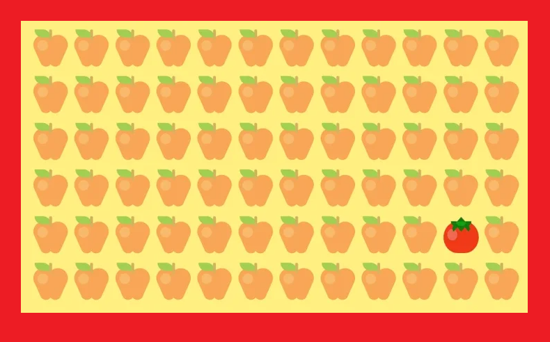 Если вы внимательно смотрели в нижний правый угол, то наверняка заметили ярко-красный помидор, скрывшийся среди оранжевых яблок.